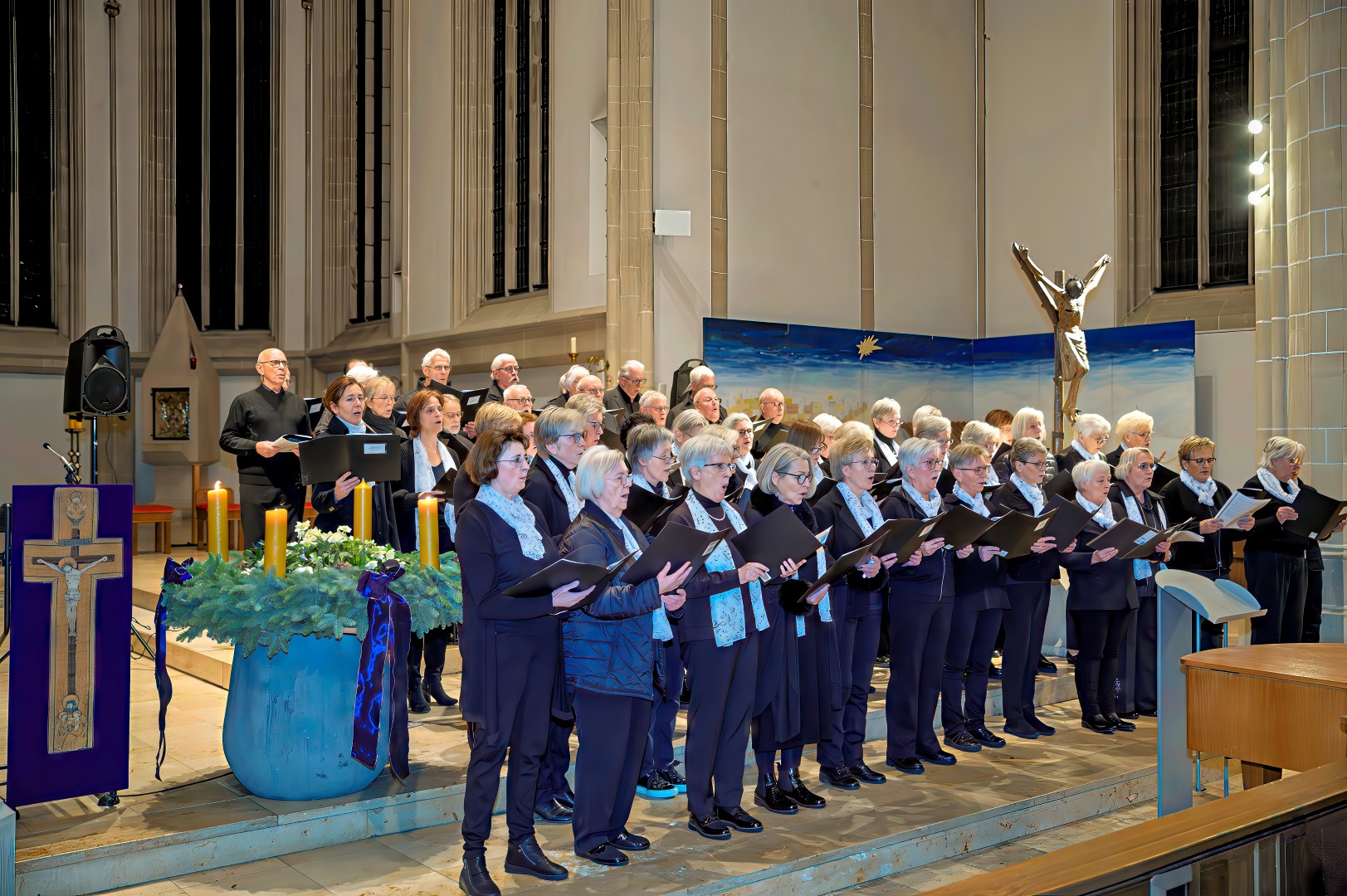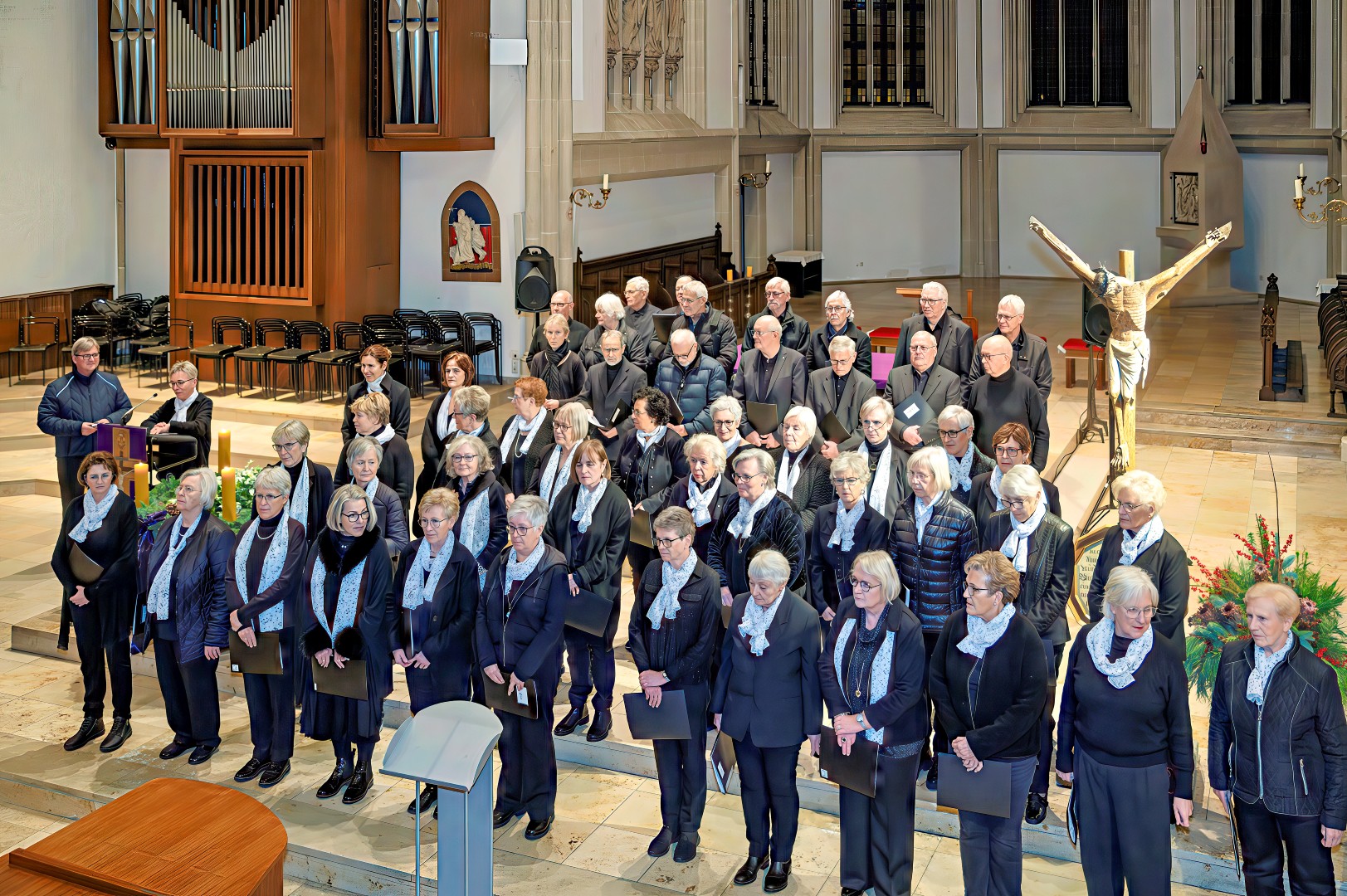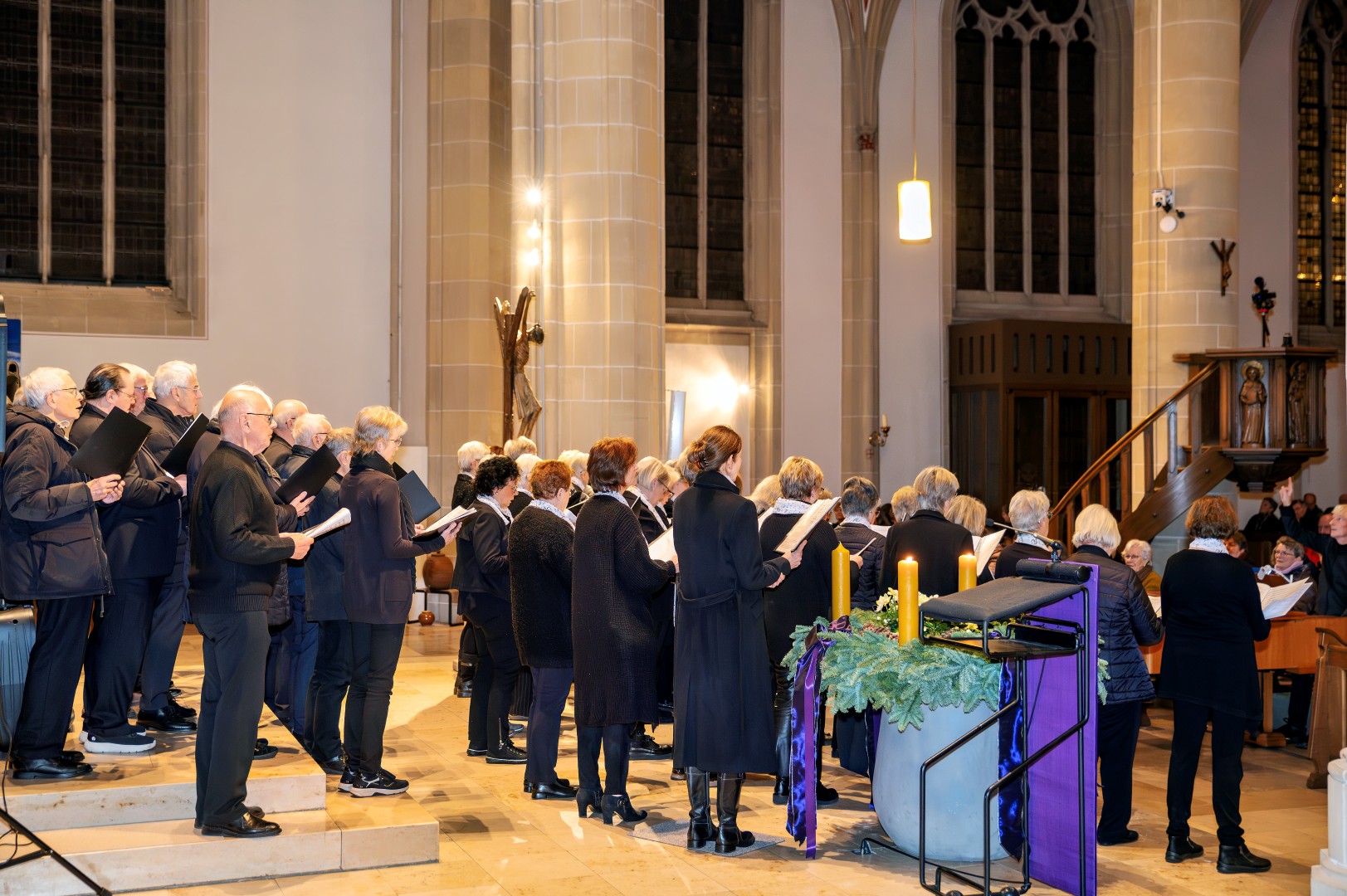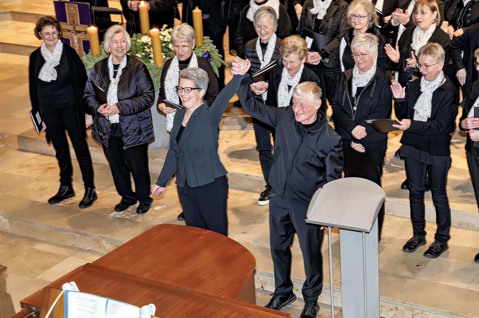 Passend zum 3. Advents 2025 trafen sich gleich zwei Chöre, zum einen der Projektchor VISION Suderwick/Dinxperlo und der Projektchor Städtepartnerschaften Bocholt, mit insgesamt über 80 Sänger und Sängerinnen zu einem gemeinsamen Chorkonzert mit den Gedanken