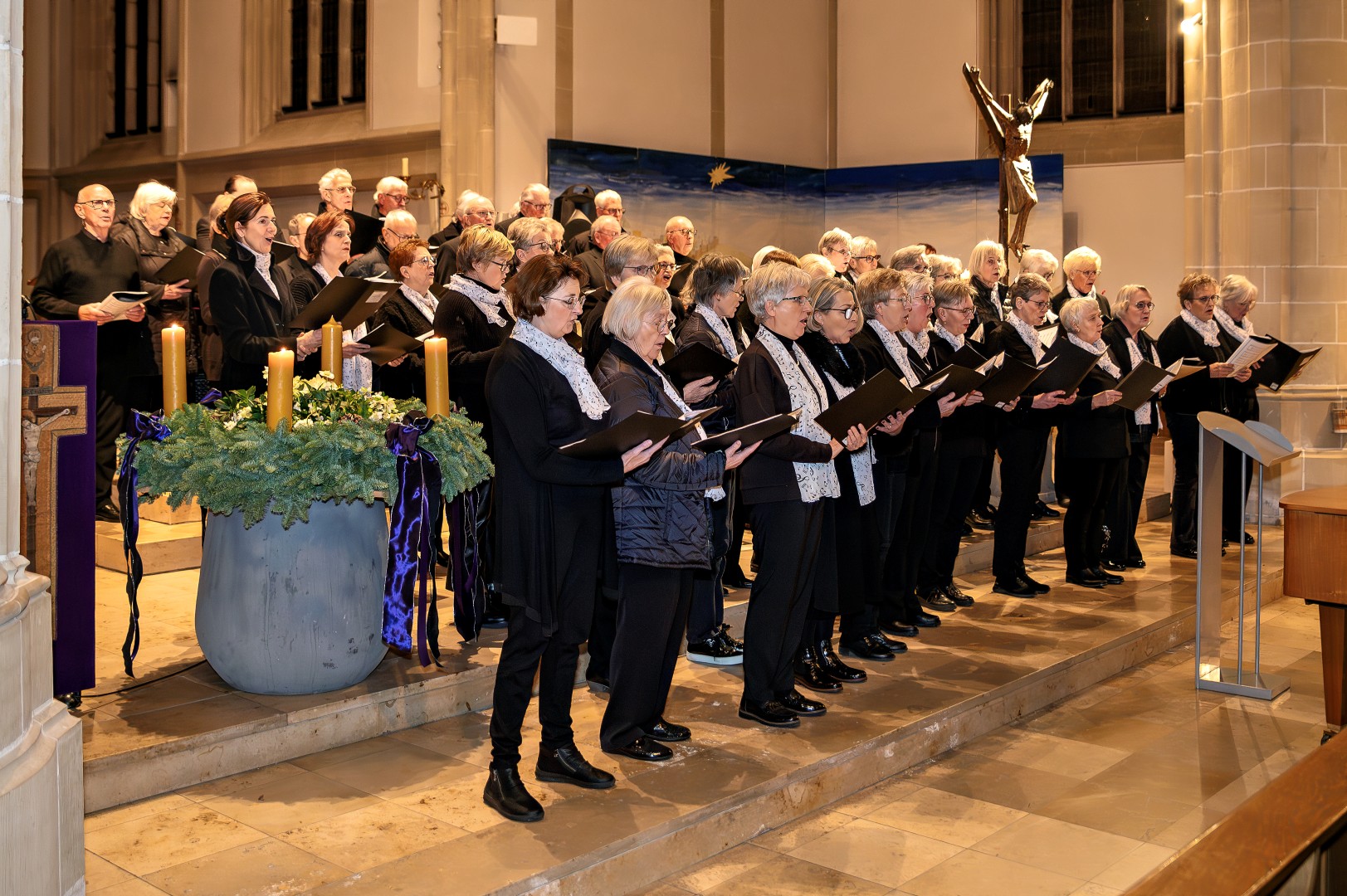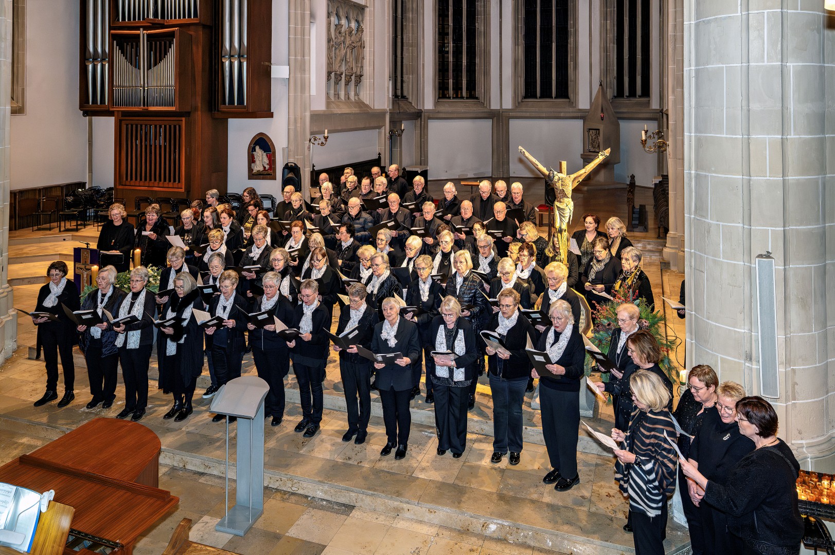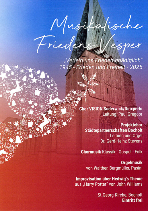 Passend zum 3. Advents 2025 trafen sich gleich zwei Chöre, zum einen der Projektchor VISION Suderwick/Dinxperlo und der Projektchor Städtepartnerschaften Bocholt, mit insgesamt über 80 Sänger und Sängerinnen zu einem gemeinsamen Chorkonzert mit den Gedanken