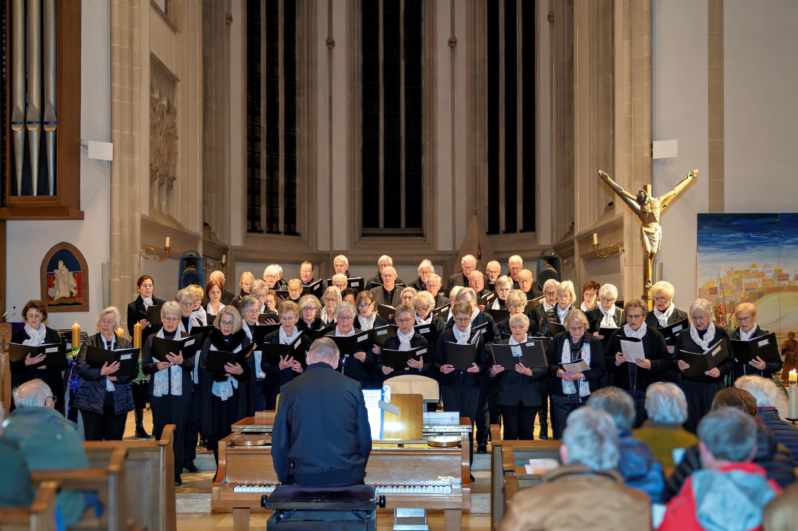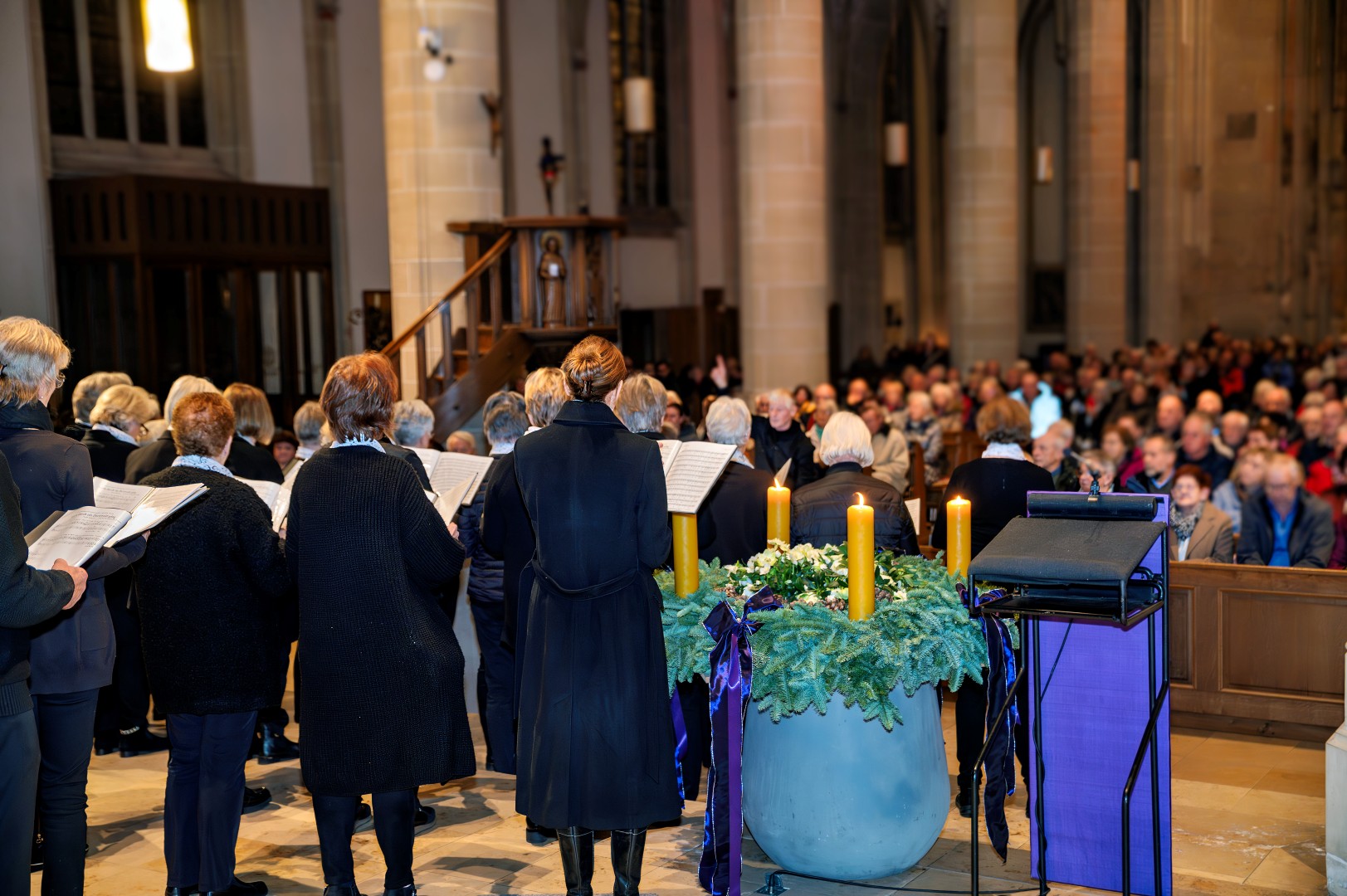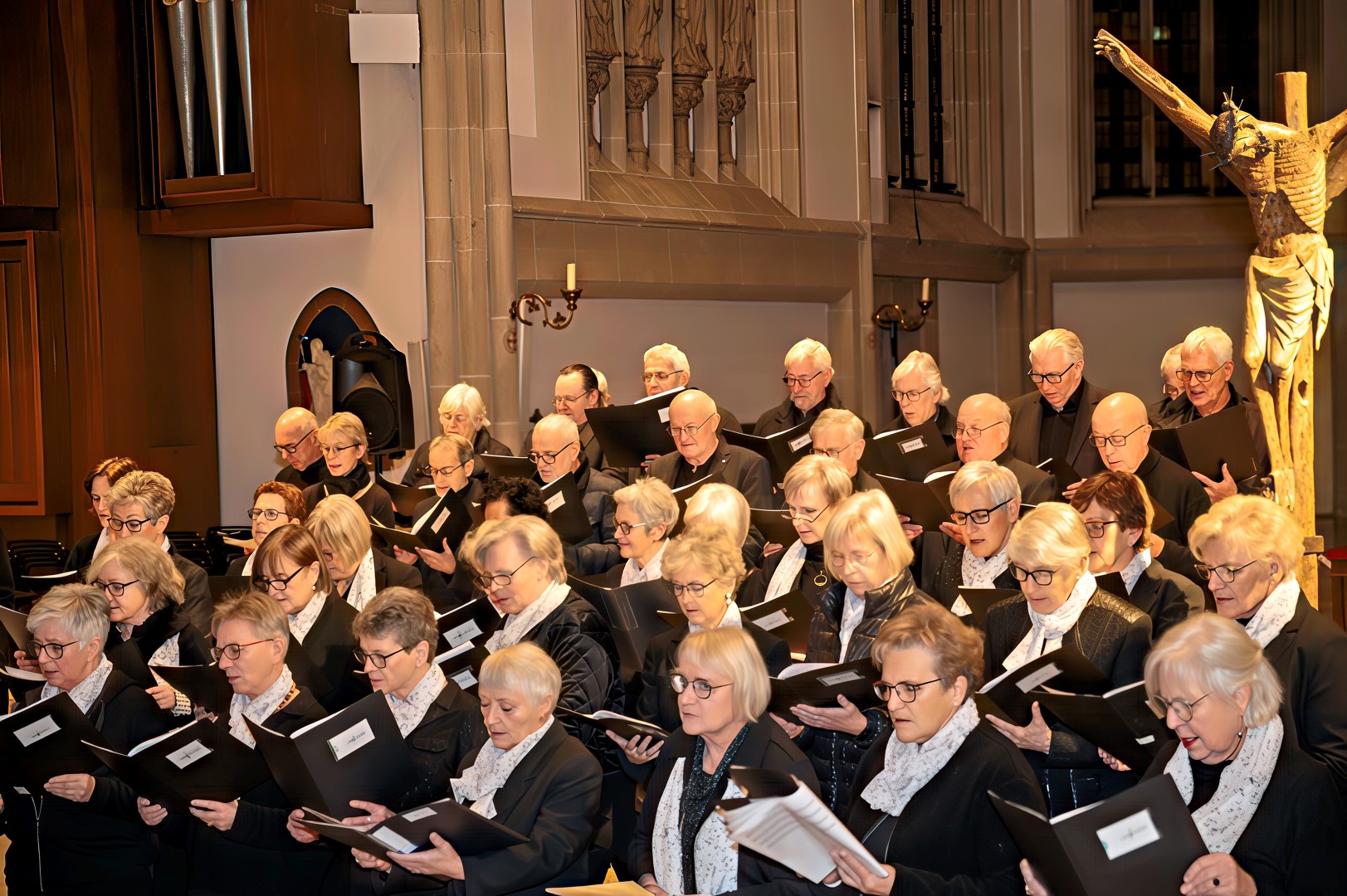 Passend zum 3. Advents 2025 trafen sich gleich zwei Chöre, zum einen der Projektchor VISION Suderwick/Dinxperlo und der Projektchor Städtepartnerschaften Bocholt, mit insgesamt über 80 Sänger und Sängerinnen zu einem gemeinsamen Chorkonzert mit den Gedanken